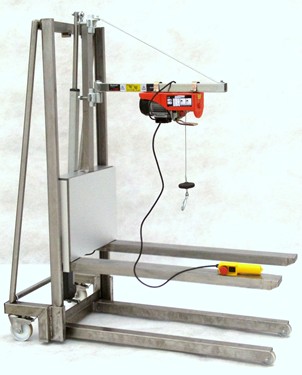 Hublifter aus Edelstahl mit Europalettengabel und Kran für viele Anwendungen in Werkstatt und Logistik Merkmale Hohe Stabilität durch leichte Spezialkonstruktion zum Mitnehmen Schnelles Aus- und Einladen in Fahrzeuge Präzise Höheneinstellung mit Linearverstellantrieb Fahrgestell zum Unterfahren von Kfz Kran mit Elektrowinde zum Entladen von Paletten und als Montagehilfe Andere Anbauteile, Rollendorn etc. als Option |